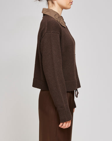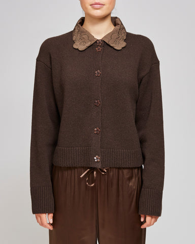 Kunstnerisk strikket design Cecilie Bahnsen Bibi cardigan fremhæver det håndværksmæssige i hver detalje. Den vævede krave med det karakteristiske b...