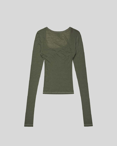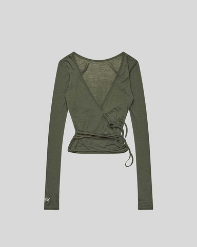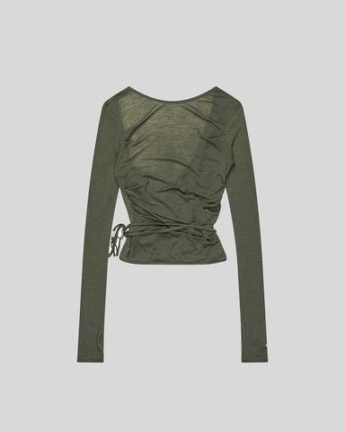 Luna Wrap bluse i merinouldKernemilk Luna-wrapblusen kombinerer design med førsteklasses materialer. Den afdæmpede olivengrønne farve understreges ...