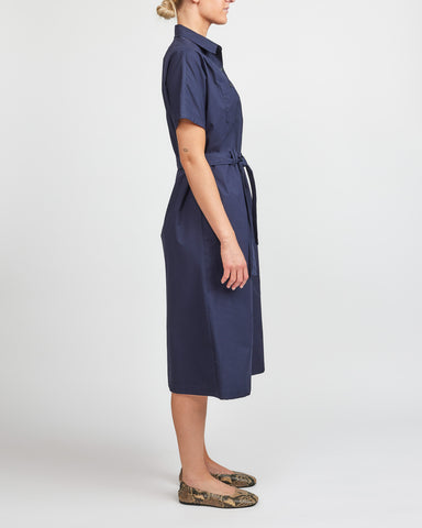A.P.C. Navy New Drew Dress Denne mørkeblå kjole fra A. P.C. kombinerer komfort med funktionalitet. Fremstillet i 100 % økologisk bomuld sikrer kjol...