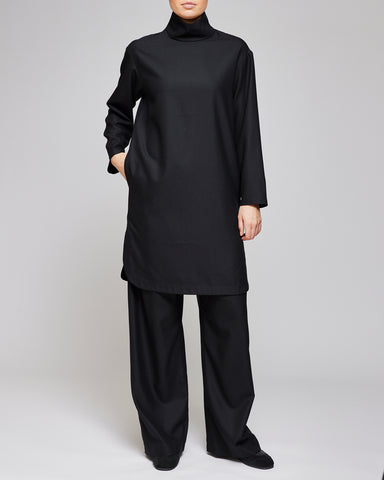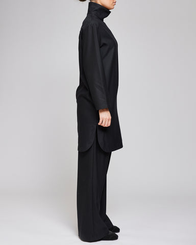 Sort minimalistisk design AF AGGER skjortekjole fremhæver håndværk og kvalitet gennem rene linjer og gennemtænkte detaljer. Den midi-høje hals og d...