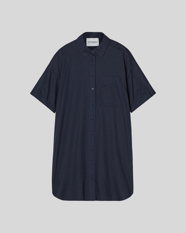 Closed Dark Night Shirtdress Skjortekjole i let bomuldskvalitet. Den mørke farve er nem at style, og brystlommen er praktisk til småting. Moderne d...