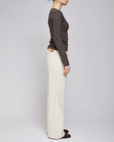 Weite Silhouette in Ecru Die Jeanerica Chevron Ecru Guell Trousers sind aus 67 % recycelter Baumwolle, 22 % Viskose und 11 % recyceltem Polyester g...