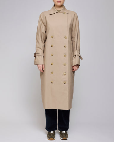 Klassischer Trenchcoat in Khaki Der Toteme Signature Trench präsentiert sich in Khaki mit einer strukturierten Silhouette. Gefertigt aus 75 % Bio-B...