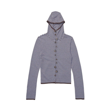 Striber i lyseblå og mørkebrunKernemilk Light Blue/Dark Brown Looney Cardigan er fremstillet med 5% cashmere og 25% uld, hvilket sikrer en behageli...