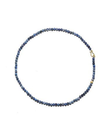 Petite bead necklace Sara Jin Mi Petite Bead Necklace fremhæver blå dumortieritperler med diskrete gulddetaljer. Den naturlige variation i stenene ...