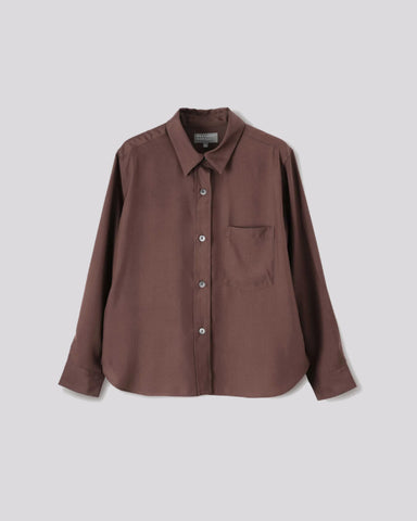 Hochwertige Seide in Braun Das Margaret Howell Rich Brown Simple Shirt wurde aus 100 % Seide gefertigt. Das weiche Material bietet natürliche Atmun...
