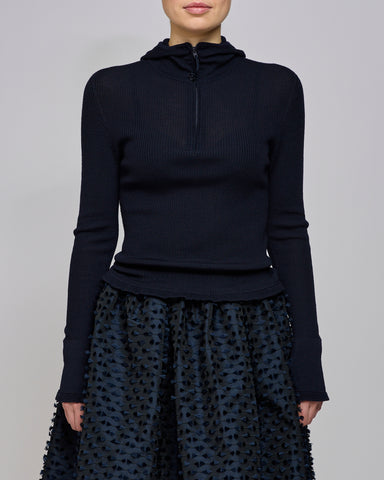 Gerüschte Details im Fokus Der Cecilie Bahnsen Navy Belma Hoodie besteht aus 100 % Merinowolle, die für ihre Weichheit und natürliche Temperaturreg...