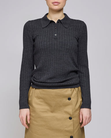 Geripptes Polo in AnthrazitDieses langärmlige Polo von A. P.C. ist aus 100 % Wolle gefertigt und zeigt eine gerippte Struktur, die dem Kleidungsstü...