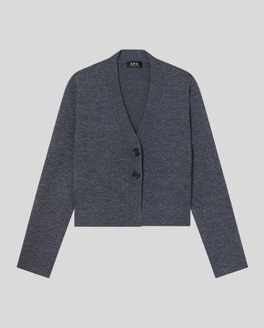 Anthrazitgrauer Cardigan mit V-Ausschnitt Der A. P.C. Anna Cardigan ist aus 100 % reiner Wolle gefertigt und bietet Komfort sowie Langlebigkeit. Di...