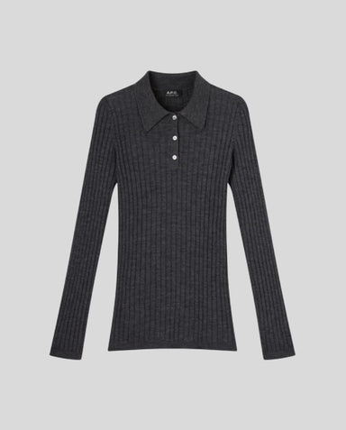 Langærmet polo i antracitgrå med krave 100% Uld