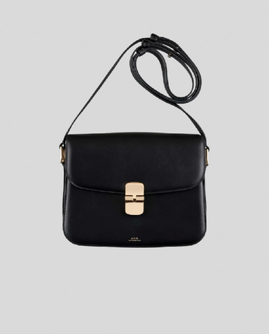 APC Black Sac Grace Soft Noir Denne taske fra A. P.C. er fremstillet i 100% kalvelæder med guldfarvet hardware. Klaplukningen med spænde giver adga...