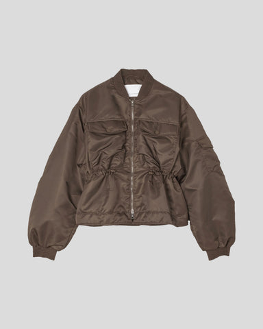 Brun jakke med lynlås og sort monogram print. 100% Recycled Polyamide