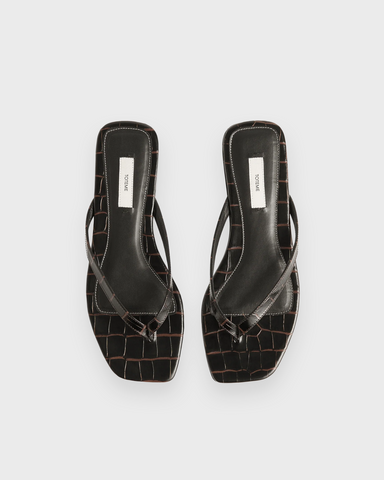Raffinierte Croco-PrägungDie Toteme Flip Flops in Dunkelbraun zeichnen sich durch ihre geprägte Croco-Optik aus, die dem Leder einen charakteristis...