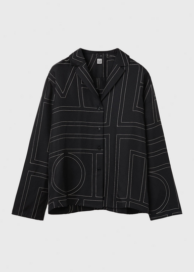 Seide in Terrakotta Das Toteme Terracotta Monogram Silk PJ Top zeigt sich in warmer Terrakotta-Farbe mit geometrischem Monogramm in elfenbeinfarben...