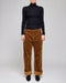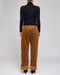 De omhyggeligt udformede læg foran tilfører bukserne et særligt præg, mens det ekstra ombuk i længden giver mulighed for individuel tilpasning. Den cognacfarvede fløjl understreger den moderne silhuet og skaber et sofistikeret udtryk.