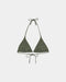 Den armygrønne nuance skaber et sofistikeret udtryk, der fremhæver bikiniens rene linjer. De justerbare bindebånd og den klassiske triangelform giver en god silhuet, mens kombinationen af genanvendt polyamid og elastan sikrer en behagelig pasform. Designet henvender sig til den modebevidste kvinde, som værdsætter bæredygtige materialer i et moderne look.
