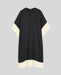 Die weißen Akzente an den Ärmeln und am Saum setzen gezielte Kontraste zur schwarzen Grundfarbe. Diese Farbgebung macht das Kleid zu einem vielseitigen Begleiter, der sich für unterschiedliche Anlässe eignet. Die Platzierung der weißen Details betont die fließende Form und hebt die weiten Ärmel hervor. Die Kombination aus Schwarz und Weiß verleiht dem Kleid eine klare Ästhetik.