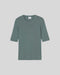 Essentiel T-shirt med fokus på enkelhed. Denne grønne T-shirt har en rund halsudskæring og trekvartærmer. Materialet er en blanding af bomuld og modal, hvilket giver en blød fornemmelse mod huden og en behagelig pasform.