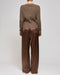 Dries Van Noten præsenterer disse lange Puvis-bukser i brun, hvor den skinnende overflade skaber et elegant udtryk. Det brede, løstsiddende design understreges af den justerbare snor i taljen, som giver mulighed for individuel tilpasning. Silkematerialet bidrager til buksernes luksuriøse karakter.
