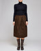 Dries Van Noten præsenterer Sonista-nederdelen med et karakteristisk design, der fremhæver det gode håndværk. Den brune farve supplerer det gennemførte design med rene linjer og konstruktion. Den er fremstillet i Italien med fokus på detaljer og finish, der kendetegner brandets høje standarder.
