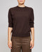 Dries Van Noten præsenterer en mørkebrun Tuan-sweater med et minimalistisk udtryk. Den rene designlinje med rund halsudskæring og korte ærmer skaber en raffineret silhuet. Sweaterens høje kvalitet kommer til udtryk i det bløde uldmateriale, som giver god åndbarhed og temperaturregulering.