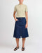 Dries Van Noten Sheraz Denim Blue Skirt er en elegant nederdel med en A-formet silhuet. Den belted talje med øjedetaljer giver et sofistikeret præg, mens knælængden og centerfrontslidsen skaber en harmonisk balance mellem klassisk design og moderne stil.