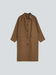 Den overdimensionerede silhuet skaber et skulpturelt udtryk, der fremhæves af frakkens rene linjer og minimalistiske design. De rå kanter og den firkantede form giver frakken et moderne og kunstnerisk præg.