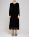 De omhyggeligt placerede frynser på ærmerne og kjolens kant skaber en dynamisk silhuet. Detaljerne er nøje udvalgt for at give kjolen et raffineret udtryk, der kommer særligt til sin ret i bevægelse.