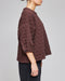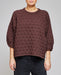 Rachel Comey Alfond Top i farven espresso præsenterer et sofistikeret quiltet mønster med karakteristisk trekantet syning. Den cropped silhuet kombineres med puffede trekvartærmer, der skaber et afslappet udtryk. Den runde halsudskæring og den afslappede pasform understreger toppens moderne karakter.