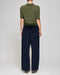 RIKA STUDIOS' Rowan bukser præsenterer sig i en mørkeblå nuance, der understreger deres moderne udtryk. Den løse pasform og vidden i benene skaber en karakteristisk silhuet, mens det naturlige materiale sikrer en behagelig fornemmelse mod huden. Bukserne har en afslappet pasform, der falder smukt.