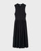 Toteme's sorte bomuldskjole forener minimalistisk design med raffineret snit. Det løsere skørt falder blødt omkring kroppen, mens den indsnævrede talje skaber en velafbalanceret silhuet. Den runde halsudskæring og det ærmeløse design understreger kjolens rene linjer, og sidelommerne er diskret integreret i snittet. Fremstillet i 100 % økologisk bomuld sikrer kjolen god åndbarhed og en behagelig fornemmelse mod huden gennem hele dagen.