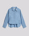 Der Hoch-Tief-Saum des Chambray Brad Shirts ist hinten länger als vorne geschnitten. Diese Saumführung schafft eine entspannte Linie, die sich gut mit Hosen oder Jeans kombinieren lässt. Die längere Rückseite bedeckt die Hüfte, während die kürzere Vorderseite Bewegungsfreiheit bietet. Dieses Detail unterstreicht den modernen Charakter des Oversized-Schnitts und macht das Hemd zu einem vielseitigen Begleiter für verschiedene Anlässe.