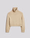 Den høje hals er udført i en struktureret strik, der giver et forfinet udtryk. Designet skaber en flot balance mellem komfort og stil, mens den cropped længde gør strikken ideel til både hverdag og særlige anledninger.