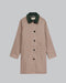Der dunkelgrüne Kragen hebt sich deutlich vom Karomuster ab und verleiht dem Trenchcoat eine besondere Note. Dieser Kontrast schafft eine klare Rahmung im oberen Bereich und betont die Gesichtspartie. Die Kombination aus dem warmen Karomuster und dem satten Grünton ermöglicht verschiedene Styling-Optionen, die sich sowohl mit neutralen als auch mit farbigen Outfits kombinieren lassen.