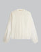 Die vertikalen Falten auf der Vorderseite des Shirts schaffen eine strukturierte Oberfläche, die dem schlichten weißen Stoff Tiefe verleiht. Diese Details sind entlang der Knopfleiste angeordnet und werden durch die eingearbeiteten Spitzenelemente ergänzt. Die Kombination aus Baumwolle und Viskose sorgt dafür, dass die Falten ihre Form behalten und gleichzeitig einen weichen Fall ermöglichen.